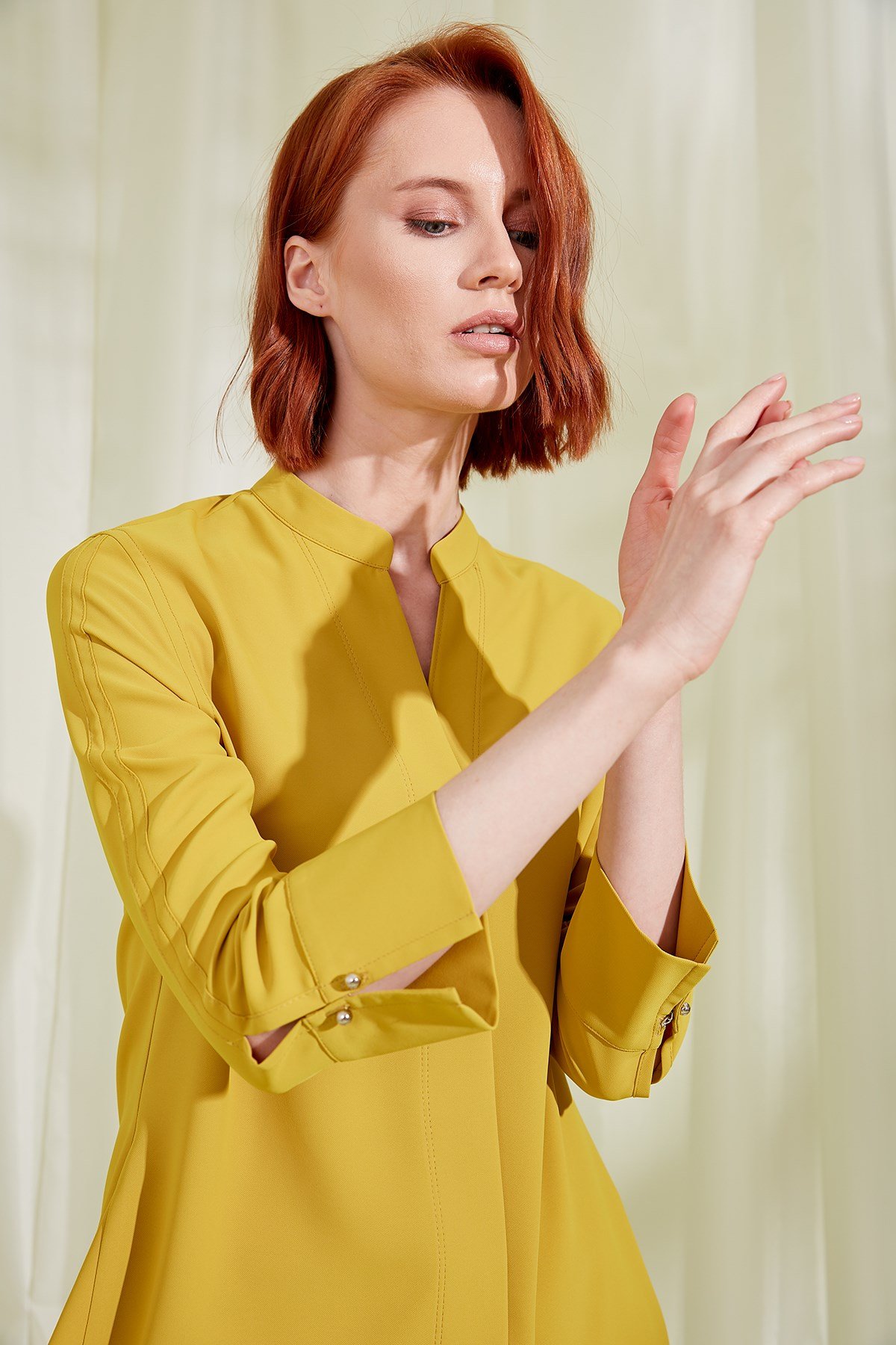 TUNİK DİK YAKA, ÖN GİZLİ PATLI, KOL MANŞETİ ZİNCİR DÜĞME DETAYLI